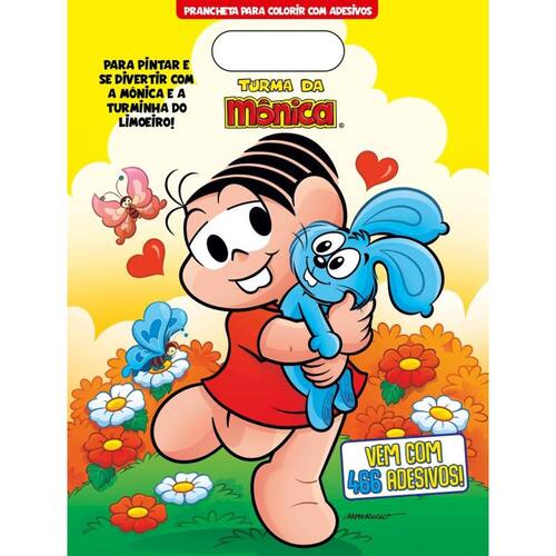 A prancheta para colorir vem com diversos desenhos para pintar e se divertir com a Mônica e toda a turminha do bairro do Limoeiro. E ainda acompanha 466 adesivos para você colar onde quiser.