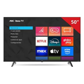 Smart TV com sistema operacional Roku TV, design sem bordas, resolução 4K UHD, processador Quad Core, Wi-Fi integrado, 3 portas HDMI, 1 porta USB, 1 entrada Ethernet RJ-45, potência de áudio de 16W, taxa de atualização de 60 Hz, tecnologia HDR10, áudio Dolby Digital.Vendido e entregue por Tá Barato Tô Levando