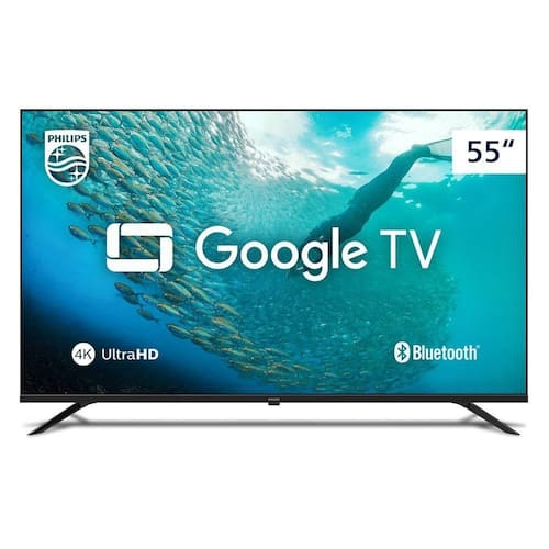 Transforme sua sala em um verdadeiro centro de entretenimento com a Philips 55 Smart 4K Google TV VOZ 55PUG7019!