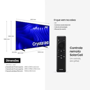 Viva uma experi?ncia cinematogr?fica sem precedentes com a TV 98 Samsung Smart UHD 4K UN98DU9000GXZD Gaming. Com sua imensa tela de 98 polegadas e processador Crystal 4K com tecnologia Deep Learning, ela entrega imagens n?tidas, cheias de contraste e realismo, ideais para filmes, s?ries e jogos. Para quem leva divers?o a s?rio, a taxa de atualiza??o de at? 120Hz com Motion Xcelerator e suporte ao HDMI 2.1 garantem fluidez total e respostas instant?neas nos games. O som em movimento virtual e o ?udio adaptativo ajustam automaticamente a trilha sonora conforme o conte?do exibido, proporcionando uma imers?o completa. Com o Smart Hub Tizen, seus aplicativos, jogos e m?sicas favoritas est?o sempre ao alcance, e o comando por voz, com Alexa e Bixby integrados em portugu?s, torna tudo ainda mais pr?tico. E com o AI Energy Mode, voc? tem tecnologia de ponta com consumo de energia inteligente. A TV perfeita para quem quer mais do que assistir: quer viver o conte?do.
