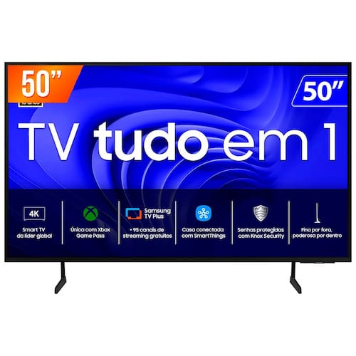 Sua primeira TV 4K com videogame e canais gratuitos. Com a Samsung Gaming Hub, acesse mais de 3.000 jogos nas plataformas Xbox Game Pass e Nvidia GeForce NOw, sem necessidade de downloads ou de consoles, além de recomendar conteúdos, transmissão de lives via Twitch e agrupar tudo sobre jogos em uma só interface (é necessário possuir assinatura da Xbox Game Pass para usufruir dos jogos). A Samsung TV Plus é a TV não paga da Samsung com canais de filmes, notícias, conteúdo infantil, esportes, novelas e muito mais. E para ficar ainda melhor com a Samsung Daily+ você tem acesso fácil ao ecossistema de aplicativos para gerenciamento rápido da sua Casa Inteligente através do SmartThings ou atividades diárias com o Workout Tracker e Microsoft 365.