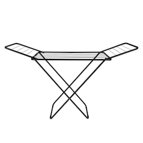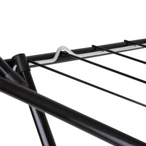 Contém seis varetas resistentes no centro e duas abas com quatro varetas cada. Capacidade de até 11 metros de roupas ou 20 quilos distribuídos, perfeito para manter a organização da sua casa!