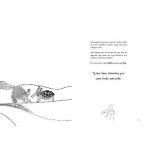 Uga e Jabu, velhos amigos, caminham pela floresta em busca de deliciosas jabuticabas. O trajeto é longo, e eles, como quelônios que são, andam muito devagar. Será que vão conseguir chegar? Passo a passo, eles refletem sobre a vida e a amizade, enfrentam desafios e acabam por descobrir o valor da solidariedade. Neste livro, Kaká Werá Jecupé nos apresenta, mais uma vez, o jeito indígena de contar histórias, trazendo as fábulas como importante patrimônio imaterial dos povos originários, tal como na obra As fabulosas fábulas de Iauaretê. Os animais das florestas brasileiras representam aqui o poder da diversidade e da sabedoria em um enredo que também põe em evidência como diferentes pontos de vista podem causar conflito, e como, com sensibilidade e empatia, podemos ajudar a solucioná-lo. Esta história é a primeira da série Fabulosas Fábulas, de Kaká Werá, que serão publicadas pela Editora Peirópolis.
