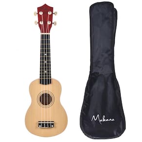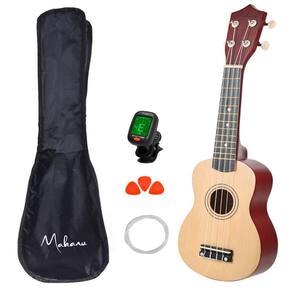 Ukulele acústico marrom soprano capa 3 paletas e afinador Ukulele acústico soprano + capa + 3 palhetas + afinador Nosso ukulele é ideal para iniciar no universo maravilhoso da música. Instrumento feito de madeira, com cravelhas reforçadas. Já acompanha cordas, capa protetora e palhetas. Dicas importantes sobre cuidados e uso do produto: Limpe os trastes e o braço sempre que você for trocar o encordoamento, já que fica mais fácil acessar as partes do braço que ficam embaixo das cordas. Especificações técnicas: Marca: makanuModelo: 01uk - sopranoMaterial do ukulele: madeiraMaterial das cordas: nylonTamanho: 54cm Importante: Compra 100% segura;Embalagem segura e resistente para garantir a segurança no transporte; Itens inclusos: 1 ukulele1 afinador1 capa3 palhetas Garantia de 3 meses contra quaisquer defeitos de fabricação e transporte. Observação: a garantia não contempla problemas por mau uso do produto.