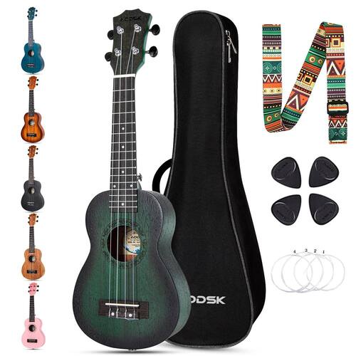 - ?Tecnologia de produção requintada?O ukulele soprano AODSK usa um corpo de madeira sapele suave com um som nítido e agradável. Possui uma escala e ponte de jacarandá lisas polidas. O acabamento do traste usa um processo de moagem e polimento de 9 passagens, e os detalhes premium fornecem jogabilidade confortável e durabilidade