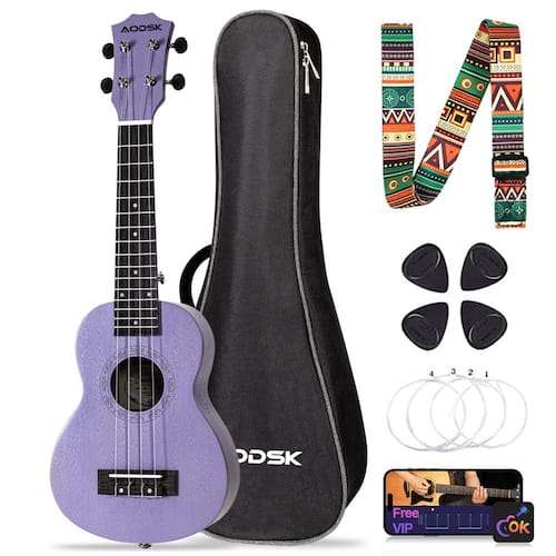 - ?Som quente e rico?O corpo e o pescoço da AODSK Ukulele Sapele proporcionam um som mais rico, brilhante e quente; porca de resina de alta qualidade e selim com 4 cordas de nylon de carbono liso altamente polido combinam para ressonância clara e bonita e mais sustentação