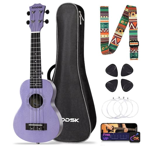 O ukulele é um instrumento musical havaiano, para que você possa combiná-lo perfeitamente com a música havaiana, mas a diversão não para por aí. Este é um bom presente para amigos adultos no Natal/Ano Novo/Ação de Graças/Aniversário/festa, e também é adequado para estudantes ou iniciantes. - ?Tecnologia de produção requintada?O ukulele soprano AODSK usa um corpo de madeira sapele suave com um som nítido e agradável. Possui uma escala e ponte de jacarandá lisas polidas. O acabamento do traste usa um processo de moagem e polimento de 9 passagens, e os detalhes premium fornecem jogabilidade confortável e durabilidade - ?Som quente e rico?O corpo e o pescoço da AODSK Ukulele Sapele proporcionam um som mais rico, brilhante e quente; porca de resina de alta qualidade e selim com 4 cordas de nylon de carbono liso altamente polido combinam para ressonância clara e bonita e mais sustentação - ?Vem com todos os acessórios que você precisa?O pacote de ukulele inclui ukulele soprano, bolsa de apresentação, alça, corda de nylon, 4 palhetas, atende a todas as necessidades dos músicos - ?Ótimo para todos?Soprano ou tamanho padrão, o ukulele de 53 cm é perfeito para jogadores de todas as idades e é uma ferramenta de aprendizagem maravilhosa para iniciantes, jovens ou idosos - ?Presente de férias?Instrumentos musicais e presentes relacionados à música podem não apenas atender às necessidades dos amantes da música, mas também adicionar uma atmosfera especial ao festival. Portanto, este produto é uma boa escolha para presentes de Natal, presentes de aniversário e presentes de ano novo