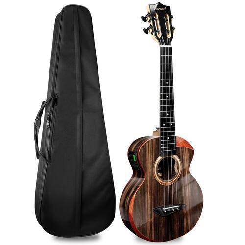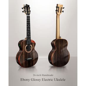Ukulele elétrico e acústico tenor brilhante Butterfly Bocote - Design de corte e apoio de braço: Habilmente feito à mão com um corte lindamente projetado e apoio de braço elegantemente moldado, ambos feitos de padauk vermelho premium, proporcionando acesso sem esforço a trastes mais altos e garantindo conforto durante sessões de jogo prolongadas. O rico contraste dos tons vermelhos quentes contra o elegante corpo de ébano preto cria uma estética elevada que melhora a elegância geral do instrumento. - Artesanato genuíno feito à mão: ao contrário de muitas outras marcas que dependem da produção de fábrica, a Caramel Ukulele se orgulha de sua construção autêntica feita à mão. Cada ukulele é meticulosamente trabalhado por sua equipe qualificada, com o mínimo de uso de máquinas. Esta abordagem prática garante qualidade superior e atenção aos detalhes. - Acabamento brilhante requintado: TEG91 apresenta um acabamento brilhante exclusivo que os diferencia dos ukuleles padrão. Semelhante ao processo meticuloso utilizado para acabamentos de laca de piano, cada ukulele passa por várias rodadas de polimento cuidadoso. O resultado é uma aparência deslumbrante, durável e brilhante que chama a atenção. - Cordas de fibra de carbono para desempenho excepcional: as cordas de ukulele especialmente projetadas da Caramel foram amplamente testadas e são conhecidas por sua excelente jogabilidade e tom claro. Estas cordas de fibra de carbono proporcionam uma experiência de toque confortável enquanto produzem uma qualidade de som rica e ressonante, tornando-as perfeitas para músicos iniciantes e experientes. - Máquina de afinação premium para desempenho confiável: os ukuleles Caramel se destacam com suas máquinas de afinação de alta qualidade. Geralmente encontrados em instrumentos artesanais de alto preço, esses afinadores apresentam um tom preto elegante, textura metálica forte e polimento requintado. Com uma relação de engrenagem 18: 1 atualizada, esses sintonizadores oferecem ajuste preciso e confiável, garantindo que seu ukulele permaneça perfeitamente afinado.