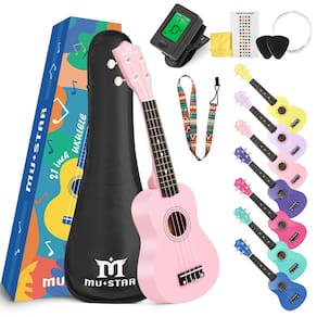 Ukulele soprano MUSTAR para iniciantes — ukulele de guitarra pequena de 21 polegadas para aniversário, bolsa de shows, sintonizador digital, alça, palhetas, kit tudo-em-um, kit inicial de ukuleles Basswood