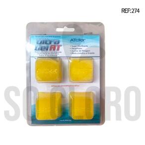 DOSAGENS: ULTRA GEL AT 1 unidade: clarificaaté 90.000 litros de água . Não adicione em piscinas com volume inferior a 25.000 litros de água. Uso quinzenal. ULTRA GEL AT 4 unidades: Cada unidade clarifica até 25.000 litros de água. Uso semanal.