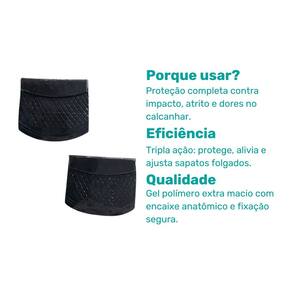 Ele evita atrito, bolhas e machucados na parte traseira do sapato, além de proporcionar ajuste seguro para calçados folgados.