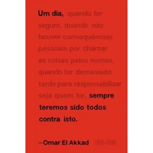 Um poderoso relato sobre o que está a acontecer agora na Palestina e as contradições morais do ocidente. A 25 de Outubro de 2023, após apenas três semanas da intensificação dos bombardeamentos em Gaza, Omar El Akkad publicou um tuite: «Um dia, quando for seguro, quando não houver consequências pessoais por chamar as coisas pelos nomes, quando for demasiado tarde para responsabilizar quem quer que seja, sempre teremos sido todos contra isto.» Teve mais de dez milhões de visualizações. Enquanto imigrante que veio para o Ocidente, El Akkad acreditava que este prometia liberdade e justiça. Mas nos últimos 20 anos, ao fazer a cobertura de guerras e protestos, e sobretudo ao assistir ao massacre em Gaza, chegou à conclusão de que grande parte do que o Ocidente promete é mentira, e que haverá sempre grupos de seres humanos a não serem tratados como tal — não apenas árabes, muçulmanos ou imigrantes, mas quem quer que fique de fora das fronteiras do privilégio. Um Dia, Sempre Teremos Sido Todos Contra Isto é uma crónica dessa dolorosa constatação, um debate moral sobre o que significa, enquanto cidadão, talhar um qualquer sentido de possibilidade numa era de carnificina. Relato cru e vulnerável, registo de uma matança inominável e uma desolada carta de ruptura com o Ocidente, este livro é para todas as pessoas que ambicionam algo melhor para o mundo. Este é o livro do nosso tempo. Marca: Não Informado