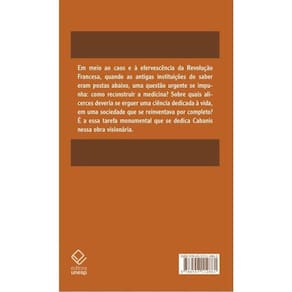 Em meio ao caos e à efervescência da Revolução Francesa, quando as antigas instituições do saber eram postas abaixo, uma questão urgente se impunha: como reconstruir a medicina? Sobre quais alicerces deveria se erguer uma ciência dedicada à vida, em uma sociedade que se reinventava por completo? É a esta tarefa monumental que se dedica Cabanis nesta obra visionária.