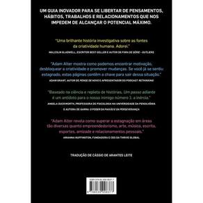 Um guia inovador para se libertar de pensamentos, hábitos, trabalhos e relacionamentos que nos impedem de alcançar o potencial máximo. Quem nunca se viu empacado em algum momento ou aspecto da vida? Seja a carreira estagnada, relacionamentos insatisfatórios, uma crise da meia-idade ou o famoso bloqueio criativo — sentir-se paralisado gera angústia, ansiedade, medo e até raiva, mas é bem mais comum do que se imagina. Um passo adiante traz o roteiro ideal para escaparmos da inércia e nos movermos em direção a novos objetivos. Baseado em estudos de psicologia social e em entrevistas com mais de uma centena de profissionais em diversas áreas que, num dado momento da vida, se sentiram frustrados e estagnados, Adam Alter explora as razões pelas quais as pessoas ficam empacadas e como elas podem superar o problema. Com exemplos inspiradores, o autor mostra que a estagnação é mais do que um incômodo passageiro: é algo sério, que não pode ser resolvido apenas com ideias antigas. É crucial saber mudar a estratégia para dar o próximo passo. Este livro fornece a combinação certa de ferramentas emocionais, mentais e comportamentais necessárias para vencer a batalha contra a estagnação. “Uma brilhante história investigativa sobre as fontes da criatividade humana. Adorei.” —Malcolm Gladwell, escritor best-seller e autor de Fora de série – Outliers “Baseado na ciência e repleto de histórias, Um passo adiante é um antídoto para o nosso inimigo número 1: a inércia.” — Angela Duckworth, professora de psicologia na Universidade da Pensilvânia e autora de Garra: o poder da paixão e da perseverança