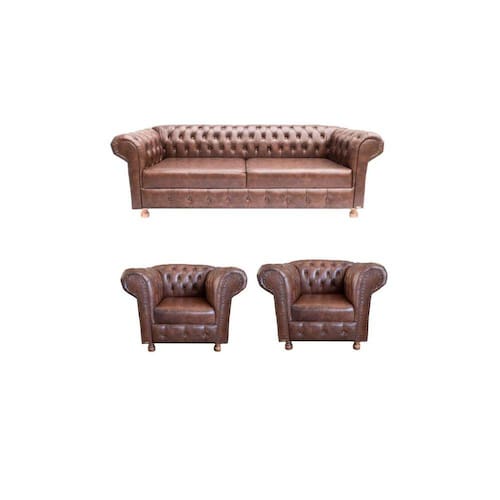 Um Sofá Luiz XV 200cm + Duas Poltronas Luiz XV Corano Marrom