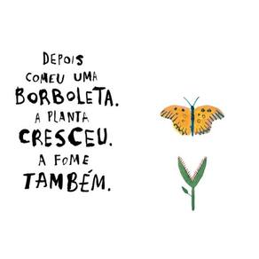 Conheça uma planta com uma fome sem fim, que fica maior a cada página — e a cada refeição! Num certo dia de sol, uma planta carnívora nasceu. Ela era pequena e delicada, e estava com muita fome. Então passou a engolir todo tipo de criatura: lagarta, borboleta, coelho, vaca paraquedista, mamute voador… Quanto mais a planta comia, maior ficava, e nada nem ninguém parecia capaz de detê-la. Será mesmo? Neste livro ilustrado, o artista Renato Moriconi cria uma planta tão cheia de fome quanto a lagarta de Eric Carle, com uma narrativa visual que vai fisgar os pequenos leitores. Este livro é indicado para crianças a partir de 4 anos.