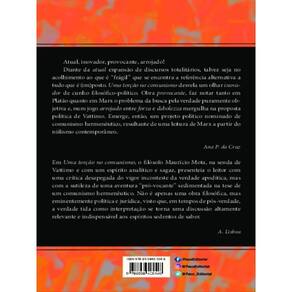Uma torção no comunismo: ontologia, hermenêutica e política em Vattimo, é uma obra pautada em pesquisas realizadas pelo autor, também direcionado pelos estudos do filósofo italiano Vattimo, que tem como um de seus objetivos dissertar e analisar a importância do pensiero debole (metáfora usada filósofo italiano para falar sobre a pós-modernidade) e sua dimensão política, baseado na tese do chamado comunismo hermenêutico de Marx, considerando o impulso político em relação ao realismo e ao objetivismo da verdade, demonstrada na metafísica de Platão. Busca mostrar ao leitor a importância de discursos.