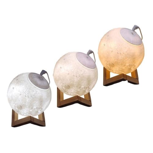 Umidificador Aromatizador Luminária Abajur Lua Cheia 3D 880mlLâmpada em formato de lua feito com tecnologia de impressão 3D, realista forma da lua cheia.Pulverização de névoa com capacidade para 880 ML de água.Lindo design, objeto decorativo para ambiente interno combina com qualquer ambiente.Você pode usar como abajur e luminária.Umidifica o ar do ambiente, melhorando assim a qualidade do ar que se respira.Névoa eficiente e silenciosa, o produto não faz nenhum ruído.Funções:- Umidificador de ar- Aromatizador- Abajur- LumináriaCaracterísticas:- Cor luminosa: luz branca + luz quente + luz amarela- Corrente de trabalho: 400mA- Potência nominal: 2W- Fonte de alimentação: Usb 5V - 1A- Ruído: abaixo de 36dB- Área aplicável: 3 metros quadrados- Modalidade de controle: toque- Spray de quantidade: 25-35ml/H- A capacidade do tanque: 880 ml - Autonomia de até 20 horas- Modo de pulverização: contínua + intermitente- Diâmetro do produto: 13 centímetros de circunferência- Medidas: 13x13x13cm- Peso: 0.370 g- Material do produto: Componentes eletrônicos + PP + Pvc + silicone, base de madeira.Observações: - Não é recomendado o uso de essências a base de óleo.- Necessário estar na tomada para funcionar.O pacote inclui:1 Umidificador luminária 3D1 Usb cabo de carregamento sem a caixinha de alimentação, pode usar a do seu celular 1 Suporte1 Manual em inglês Marca: Wtx Imports