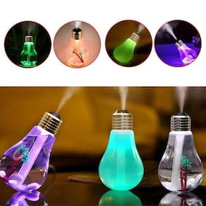 Difusor de aromas e Umidificador de ambientes ideal para todos os cômodos da sua casa ou trabalho Deixe o ambiente mais fresco e aromatizado com a possibilidade do uso de essências. Possui um design único em formato de lâmpada, com decoração inclusa de pedras e ornamento floral em plástico.