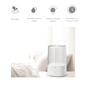 Características: Autonomia de até 15 horas de funcionamentoIluminação personalizávelTecnologia ultrassônicaFunção de desligamento automático quando o nível de água se encontra baixo no tanqueCapacidade para 4 litros de águaTecnologia bivolt, apresentando compatibilidade com os padrões 127V e 220VFácil ajuste de intensidade de névoa, com botões touchFunção smartBaixo nível de ruído, de modo que seu funcionamento não atrapalhe o sono ou cause qualquer tipo de incômodo sonoroFunção de aviso de nível mínimo de águaAmpla abertura na parte superior do reservatório, que facilita e possibilita uma melhor limpeza.Especificações:Alimentação Elétrica: 127V – 220VPotência: 22WCapacidade Total: 4LVazão: 250-300ml/hNível de Ruído: 35dBAutonomia máxima: 15 HorasÁrea de cobertura: 25m²Ajuste de Névoa: SimBotão Liga/Desliga: SimAviso de falta de água: SimIndicador de temperatura: NãoIndicador de Umidade relativa: NãoTecnologia: UltrassônicaFunção Smart: NãoMaterial: PlásticoCor: BrancoMedidas do Produto: (A x Diâmentro) mm: 302 x 175 x 185Peso Líquido: 0,99*Imagens Ilustrativas**Garantia: 12 Meses*
