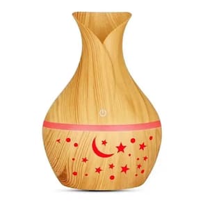 Umidificador aromatizador ultrasonico tulipa estrelada madeira clara usb com led colorida