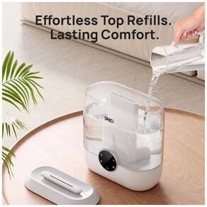 O Umidificador Dreo para ambientes amplos emite um refrescante e ultrafino vapor de 5 m de altura graças às entradas duplas e bico largo. Com uma saída de 300 ml/h, combate eficazmente o ar seco em espaços,protegendo os móveis contra danos causados pela umidade. Com um grande tanque de água de 6 litros, este umidificador pode manter a umidificação contínua por até 60 horas no modo de sono. Seu design de abastecimento superior simplifica recargas, garantindo conforto ininterrupto com menos interrupções. Funcionando em silêncio com 28 dB, este umidificador para quarto garante um sono tranquilo. Personalize seu santuário do sono com óleos essenciais e iluminação ambiente, ou desligue para total escuridão. Um dispositivo versátil para uma noite inteira de serenidade. O sensor avançado com precisão de 5 acompanha os níveis de umidade, enquanto a luz ambiente mantém você ciente das mudanças de umidade. O modo automático ajusta seu umidificador de vapor frio para uma qualidade do ar ideal, perfeito para berçários e plantas. O design moderno deste umidificador possui um visor digital para leituras instantâneas de umidade. Escolha entre três configurações de vapor e ajuste o bico de 15 para dispersão direcionada. Desfrute de conforto contínuo com um temporizador que varia de 0 a 12 horas. O design modular deste umidificador de ar garante limpeza simples. Cartucho opcional não incluído para descalcificação, reduzindo o acúmulo de calcário e garantindo um vapor saudável. A luz de ícone notifica quando o cartucho precisa ser substituído, garantindo ar fresco o ano todo.