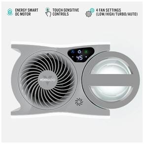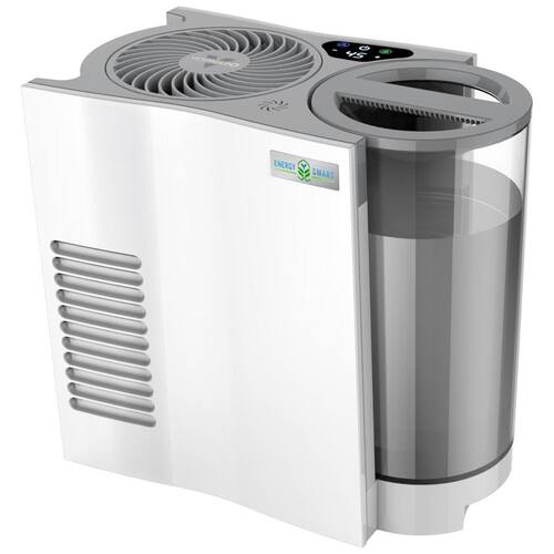 Tamanho EVDC300. Fornece umidificação para toda a sala acionada por um motor DC Energy Smart. Com mais potência do que um Vornado padrão, ele fornece a circulação de umidade em toda a sala, usando 90 menos energia, em comparação com um umidificador Vornado AC comparável a motor. Pressionar o botão de folha economiza ainda mais energia desligando automaticamente se ficar sem água. O design minimalista apresenta um tanque de 3,79litros claro e fácil de encher, fácil de usar e manter, com um indicador de pouca água que mostra quando é hora de reabastecer. As configurações personalizáveis de umidade, combinadas com o controle preciso da auto umidade, permitem personalizar o processo de evaporação natural, deixando um espaço perfeitamente umidificado, livre da poeira branca que a névoa deixa para trás.