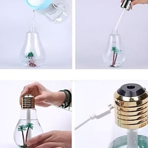 Aproveite as vantagens de um ambiente bem humidificado e iluminado de forma suave com o Umidificador de Ar em formato de lâmpada. Sinta a diferença no ar que você respira enquanto desfruta da ambientação tranquila que este dispositivo proporciona.
