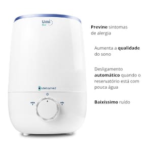 - Diferenciais: *Capacidade de 3,4 litros *Previne sintomas de alergia *Aumenta a qualidade do sono *Possui reservatórios especiais que permitem o uso de óleos essenciais, ideal para quem deseja unir bem-estar e fragrâncias no dia a dia *Desligamento automático quando o reservatório está com pouca água *Baixíssimo ruído