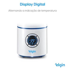 o UMIDIFICADOR DE AR ULTRASSÔNICO DIGITAL INTELIGENTE COM MEDIDOR DE TEMPERATURA E UMIDADE DO AR 2,5 LITROS BIVOLT ELGIN Com um design totalmente diferenciado e um tanque 2,5 litros de capacidade, o umidificador Elgin une bem-estar e sofisticação. Apresenta display digital com indicação de temperatura e umidade relativa do ambiente. É bivolt (127V e 220V) e fácil de manusear. O umidificador tem a função sleep sendo possível desligar o display digital para maior conforto. Possui 3 níveis de intensidade da névoa e indicação de falta de água através de um sinal sonoro e indicação no visor. O Umidificador Digital da Elgin possui tecnologia ultrassônica que quebra a molécula de água através de vibrações, transformando-a em névoa. Para maior comodidade, o umidificador possui a função SMART, na qual é possível programar a umidade relativa do ar dentro do nível recomendável de 40% a 60% (a faixa de ajuste é de 40% a 75%, com regulagem de 5 em 5%). Assim, essa função evita que o ambiente se torne saturado e impede a proliferação de microorganismos prejudiciais à saúde, podendo garantir umidade ideal e saudável. Possui também a função timer sendo possível escolher em quanto tempo você quer que seu umidificador seja desligado.