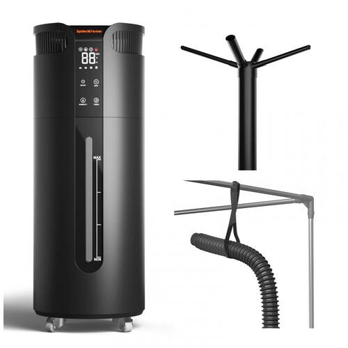 Além disso, este umidificador é equipado com tubos de quatro canais que permitem a pulverização da névoa em 360 graus, aumentando a umidade de forma eficaz. As rodas na parte inferior facilitam o deslocamento do umidificador, tornando-o prático para mover.