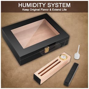 Especificações: Dimensões do produto: 23,8 x 5,1 x 18,3 centímetros; 1 quilograma, Fabricante: Bald Eagle Cigar Store U.S., Cor: Preto, Material: Madeira de Cedro, Característica Especial: Tampa de Vidro, Estilo: 10-15 Charutos Marca: Não Informado