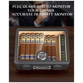 O Humidificador de Charutos com Topo em Vidro da FANKAI é feito com material ABS de alta qualidade, combinando elegância atemporal com funcionalidade contemporânea. A tampa de vidro transparente oferece visibilidade em tempo real dos seus charutos, sem comprometer o clima interno. Com dimensões de 23 x 17 x 7 cm e peso de 798 g, esta compacta caixa de charutos é uma adição elegante e econômica para a decoração da sua mesa. Feito de cedro espanhol de alta qualidade, este umidificador premium é hermeticamente projetado com tecnologia avançada de vedação para controlar a umidade de forma ideal, preservando a frescura, sabor e aroma dos seus charutos. Equipado com um umidificador compacto, higrômetro mecânico e divisor versátil, este umidor é o companheiro ideal para os apreciadores de charutos. Com capacidade generosa para até 2025 charutos, este umidor é o presente perfeito para os amantes de charutos em ocasiões especiais.