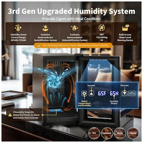 O Humidificador de Charutos NEEDONE 23L Pro oferece controle preciso de umidade, com faixa de umidade de 65% a 75%. Sonda de umidade sensível garante monitoramento em tempo real. Sua estrutura exclusiva de circulação de água maximiza o espaço de armazenamento mantendo um excelente desempenho. Mantém a umidade interna estável para armazenamento ideal de charutos. O controle de temperatura preciso SemiHeat Cool une resfriamento e aquecimento para todas as estações, com faixa de temperatura de 16°C a 21°C. Sonda de temperatura sensível garante monitoramento em tempo real, resfriamento/aquecimento rápido e mantém a temperatura interna para o crescimento ideal do charuto. Possui vidro duplo transparente com iluminação aprimorada que destaca seus charutos em várias camadas. O sistema de refrigeração de ar 360 sem gelo garante uma distribuição uniforme do ar, evitando a formação de ar úmido. Feito de madeira de cedro espanhol, o umidor preserva o aroma e sabor de sua coleção. Controle de toque elegante integrado na interface de vidro, oferece conveniência com botões antimanchas. Funciona silenciosamente e sem vibrações, proporcionando um ambiente tranquilo. Perfeito para presentear em diversas ocasiões.