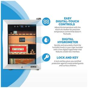 Controle Digital de Temperatura Opti-Temp: Com o sistema Opti-Temp, você pode ajustar a temperatura do seu umidor, aquecendo ou resfriando sua coleção de charutos na temperatura exata necessária. Não importa se você mora em uma área úmida ou seca, o sistema se adapta às suas necessidades.