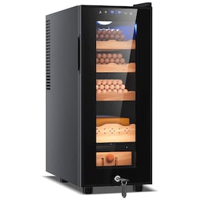 O Umidor Elétrico Tylza 35L é um verdadeiro tesouro para colecionadores de charutos. Com vidro temperado de três camadas e revestimento LowE, oferece isolamento térmico e preservação de calor excepcionais. O painel touchscreen possui termômetro e higrômetro digitais para operação inteligente. Controle simultâneo de temperatura (15-22°C) e umidade (60-75%), com resfriamento de ar sem gelo em 360º para envelhecimento ideal dos charutos. Com capacidade para até 260 charutos, prateleiras de cedro espanhol para aroma natural, travas de segurança e design elegante, é o presente perfeito. Aproveite a paz com baixo ruído de operação (35 dB) e garanta a excelência do seu acervo.