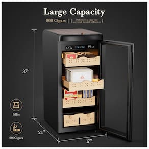 Umidor Eletrônico Inteligente de 115L com Controle de Temperatura e Umidade, Gavetas de Cedro Espanhol, Display Digital LCD -