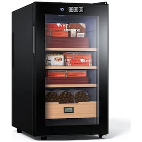 O umidor NEEDONE 48L é um armário refrigerado elétrico que oferece funções de resfriamento e aquecimento, sendo perfeito para ser utilizado em qualquer estação do ano. Utilizando a Tecnologia SemiHeat com chips semicondutores, mantém o clima interno preciso e constante, com níveis de ruído inferiores a 38dB, proporcionando um funcionamento ultra silencioso. Feito de cedro espanhol, o humidor promove o envelhecimento, melhora o aroma e preserva o sabor dos charutos armazenados. Com capacidade para até 350 charutos, as prateleiras e gaveta de cedro estão impregnadas com um aroma natural agradável. A porta de vidro duplo, com controle ao toque, isola raios ultravioleta e retém o calor de forma eficaz. Além disso, o sistema de resfriamento de ar de circulação 360° evita a formação de gelo e garante que a umidade seja uniformemente distribuída em todas as camadas do armário. Um presente elegante e funcional para os amantes de charutos.