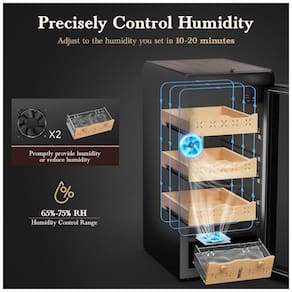 Este umidificador 6575 RH é ideal para manter a umidade constante em seu ambiente. Ele possui um sistema de detecção de umidade que ajusta a umidade no umidificador de acordo com sua configuração em tempo real, mantendo a umidade constante após apenas 1.020 minutos de ajuste. Além disso, ele possui funções de aquecimento e resfriamento para manter a temperatura constante dentro do umidificador, garantindo que seus charutos estejam sempre no ambiente de temperatura mais adequado. Fabricado em estrutura de madeira de cedro espanhol de alta qualidade, este umidificador emite um aroma natural ao abrir a porta, hidratando seus charutos e evitando que ressequem e fiquem mofados. Com capacidade extra grande de 900 charutos, recortes nas frentes das gavetas e prateleiras para melhor circulação de ar, iluminação embutida de 6500K e porta trancável para garantir a segurança de seus charutos, este umidificador é perfeito para a sala de estar, escritório, quarto ou adega.