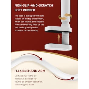 - Estabilidade e proteção aprimoradas: ao contrário das configurações tradicionais, nossa tela manual possui um suporte robusto com uma base de borracha macia. Esse design antiderrapante e resistente a arranhões aumenta o atrito, garantindo uma aderência segura na mesa de unhas. A estabilidade adicional torna seu trabalho de unhas de acrílico mais confortável e eficiente, permitindo uma aplicação mais suave e precisa.