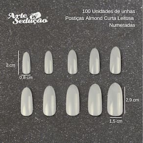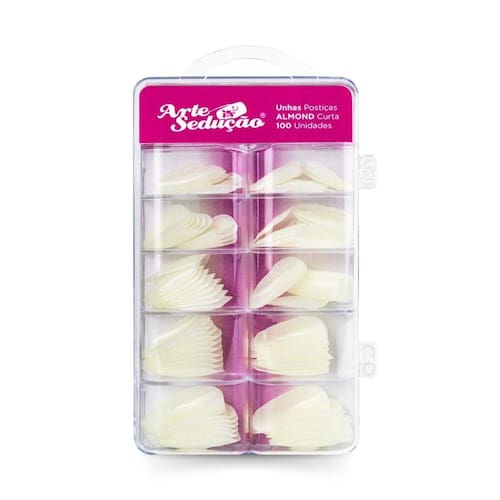Características Principais: Marca: Arte Sedução Modelo: Almond Curta Tipo: Unha Postiça Cor: Leitosa Quantidade: 100 Unidades Tamanho: Diversos Composição: Plástico ABS
