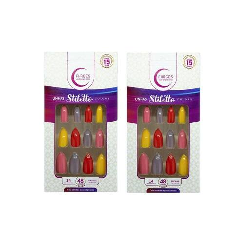 Unhas Postiças Fhaces Stiletto Multi Saori Com 48Un- Kit 2Un