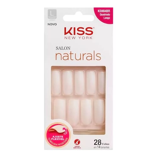 UNHAS POSTIÇAS KISS NEW YORK SALON NATURALS TAMANHO QUADRADO LONGO KSNO4BR Unhas sem cola. Ajuste flexível. Tecnologia patenteada. Preparação: Limpe as unhas com removedor de esmalte à base de acetona