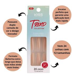 As unhas postiças possuem design inovador e brilhos que no formato bailarina extra longo deixam suas mãos ainda mais incríveis. Sem deixar de lado o conforto possuem encaixe perfeito que garante uma aplicação bem mais rápida. O resultado que só uma unha KISS NEW YORK pode proporcionar. As unhas postiças da Kiss New York possuem tecnologia de encaixe perfeito, tornando a aplicação das 24 unhas muito mais rápida e trazendo mais conforto na sua utilização.
