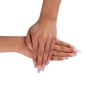 3. Começando pela cutícula, pressione a unha postiça na unha natural e a mantenha pressionada por 5 segundos.