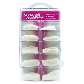 01 - caixa acrílica com 100 unidades de unhas postiças formato stiletto, arte sedução