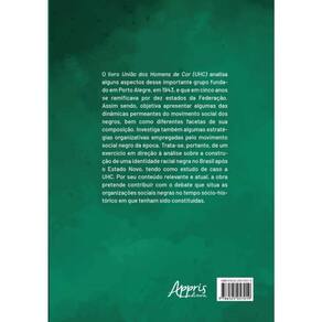 O livro União dos Homens de Cor (UHC) analisa alguns aspectos desse importante grupo fundado em Porto Alegre, em 1943, e que em cinco anos se rami?cava por dez estados da Federação. Assim sendo, objetiva apresentar algumas das dinâmicas permeantes do movimento social dos negros, bem como diferentes facetas de sua composição. Investiga também algumas estratégias organizativas empregadas pelo movimento social negro da época. Trata-se, portanto, de um exercício em direção à análise sobre a construção de uma identidade racial negra no Brasil após o Estado Novo, tendo como estudo de caso a UHC. Por seu conteúdo relevante e atual, a obra pretende contribuir com o debate que situa as organizações sociais negras no tempo sócio-histórico em que tenham sido constituídas.