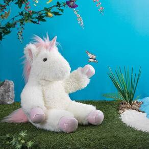 Pelagem mais fofinha para abraços perfeitos - Este incrivelmente macio e abraçável unicórnio de pelúcia ponderado é um dos animais de pelúcia mais suaves por aí, e sua pelagem curta é lavável na superfície; a escolha perfeita para os amantes de unicórnios.