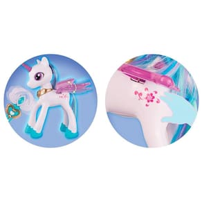 Unicórnio Rosa - Toyng 043152 Lindo unicórnio Rosa para se divertir. Vem com acessórios e varinha mágica interativa. Utiliza 3 pilhas no corpo do unicórnio AAA 1,5V pilhas não inclusas e 2 pilhas AAA na varinha não inclusas.
