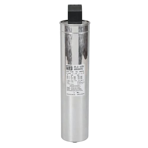 Desenvolvidos a base de filme de polipropileno metalizado auto-regenerativo, possui dispositivo interruptor de segurança contra sobre pressão interna e baixas perdas dielétricas. Resumo das características técnicas Potência reativa 7.5 kVAr Tensão nominal Ue 220V60Hz Frequência 60 Hz Tipo do terminal Parafuso Série E código: 11313783 Série E Capacitância (ligação delta) 137.0 F Tolerância da capacitância 5% Expectativa de vida 100.000 h Classe de temperatura -25/D Capacidade de curto circuito 10 kA Conexão da resistência de descarga Terminal fast-on Material de preenchimento Resina poliuretana Máxima tensão 1,3 x Vn Grau de proteção IP20 Peso bruto 1,807 kg